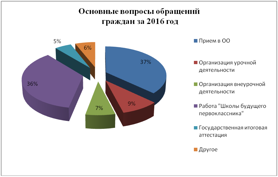 За 12 месяцев 2016 года в администрацию муниципального автономного общеобразовательного учреждения «Школа № 172» от граждан поступило 7187 обращений, в которых задан 8201 вопрос: